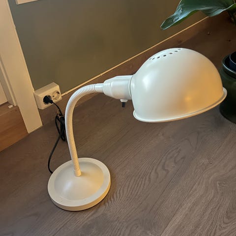 Klassisk arbeidslampe i stål som kan tilpasses slik du ønsker enten for å lese, jobbe eller bare som hygge som bordlampe.
