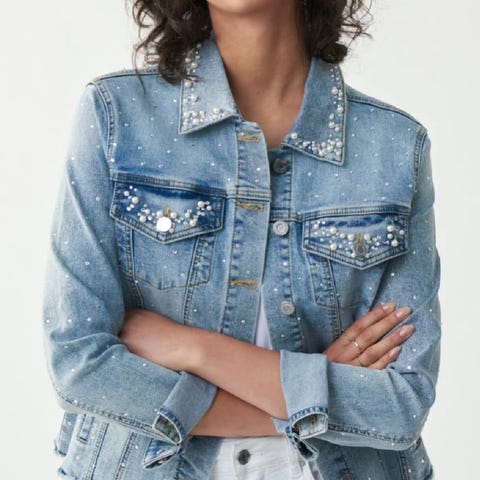 Saint Tropez Andre jakker for kvinner i størrelse S. Jakken er beige og laget av bomull. Den har en strukturert overflate med små paljetter og to brystlommer med klaff. Passer til hverdagsbruk og fest og kan kombineres med ulike antrekk.