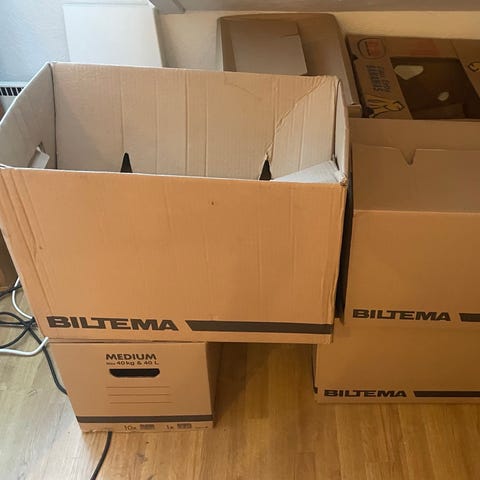 Samlet pris: 100 kr eller 80 kr dersom kjøper også tar med de gratis eskene (se bilde nr. 2 - dette er ikke flytteesker, men de fungerer helt fint til flytting).