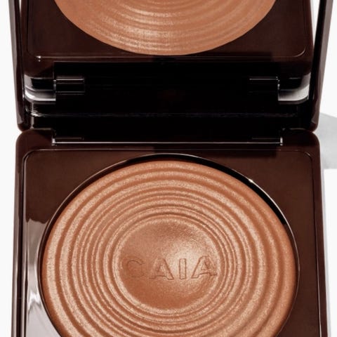 «CAIA’s Glow Bronzer har en patentert Prisma-teknologi som gir deg en naturlig, solkysset look. Formelen er byggbar, noe som gjør det enkelt å påføre og tilpasse mengden. Den smelter sømløst inn i huden som en krem, samtidig som den holder seg på plass som et pudder og gir et silkeaktig resultat med en soft-focus finish."