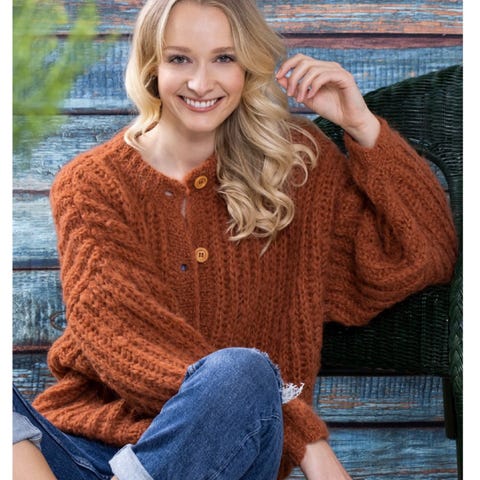 Strikkepakke i Reiki Consept by Katia (nok garn opp til str 44-46) i farge 107 oker selges for kr 420.