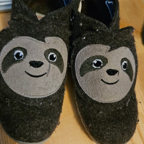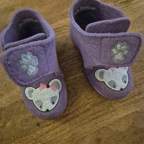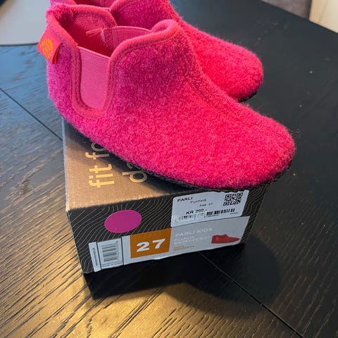 Kjøpt til jente som ikke liker tøfler! Blir ikke brukt. God såle, varme og enkle å ta av og på. Str 27.
