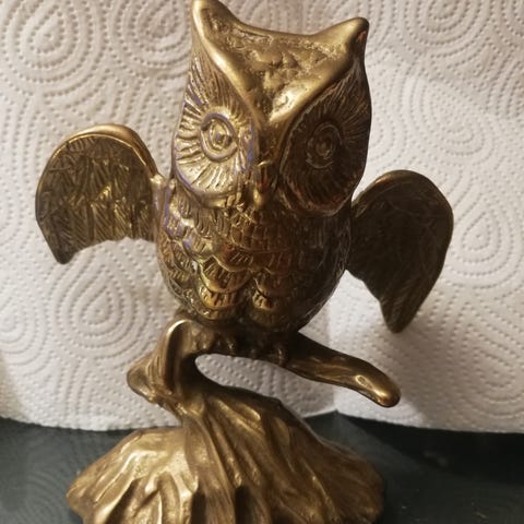 Uglefigur laget av marmor med detaljer i oransje. Figuren har en solid base og er dekorativ. Passer til innendørs bruk som dekorasjon.