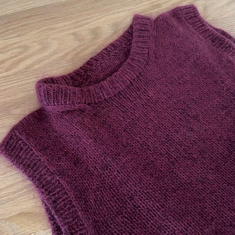 Håndstrikket burgunderrødt skjørt i ull/mohair