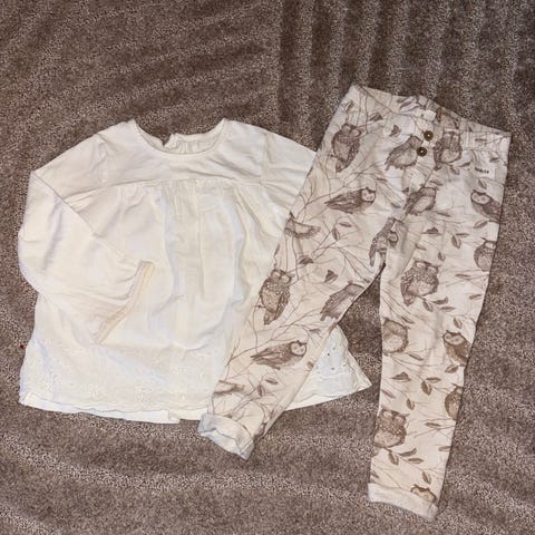 Strl på jakka er 98 på buksen er den 86. Buksen er veldig stor i strl så jenta vår passet dette fint i to års alder.