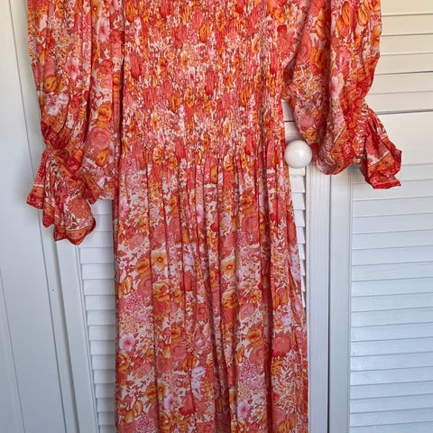 Lindex sommerkjole i størrelse L- XL. Kjolen har flerfarget mønster og er laget av bomullsmateriale. Egnet for bruk som lett og luftig sommerplagg.