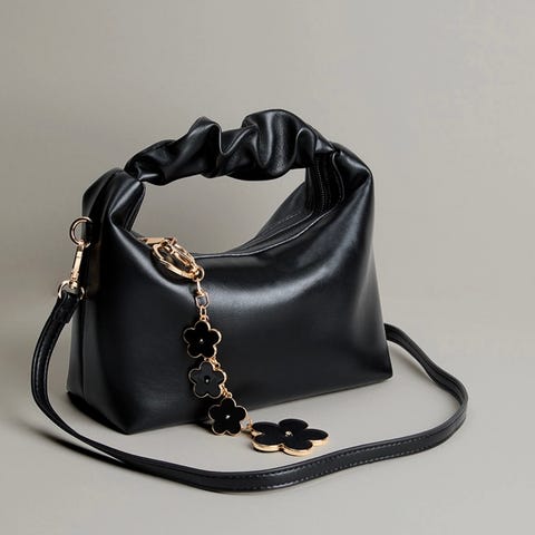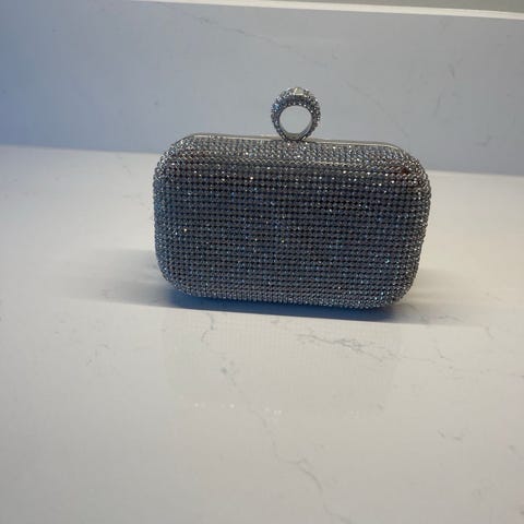 Med denne glitrende skjønnheten blir du festklar med det samme. Den lille festvesken er dekorert med strassteiner på en gyllen bunn. Vesken har en avtakbar skulderlenke og kan bæres både cross body og over skulderen.