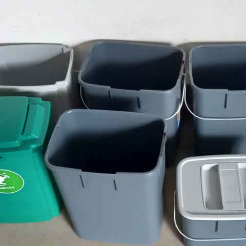 Beholdere for kildesortering under kjøkkenbenken.
