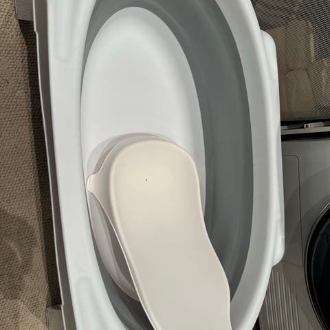 Frigga sammenleggbart badebalje inkludert nyfødtstøtte fra yngri kjøpt på barnashus i april. Babyen vår er for stor for den, vi har lite plass og selger den rimelig på grunn av det.