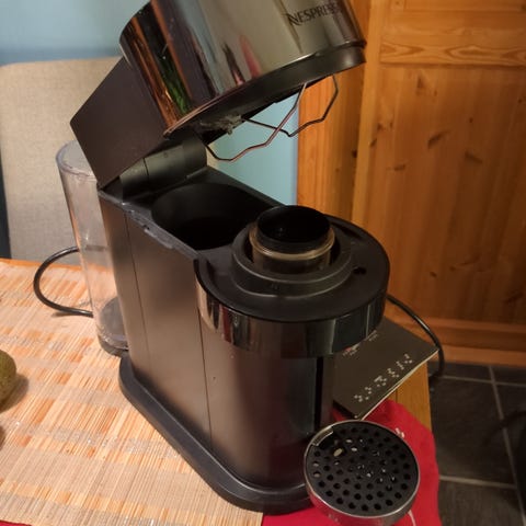Nespresso Vertuo Plus kaffemaskin med kapselbasert bryggesystem. Designet for enkel bruk og effektiv kaffebrygging. Maskinen er svart og kompakt, egnet for hjemmebruk eller kontor.