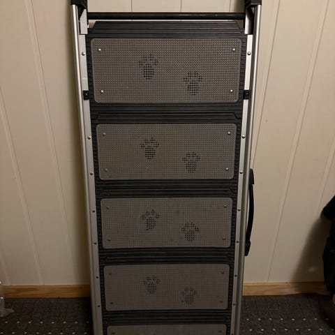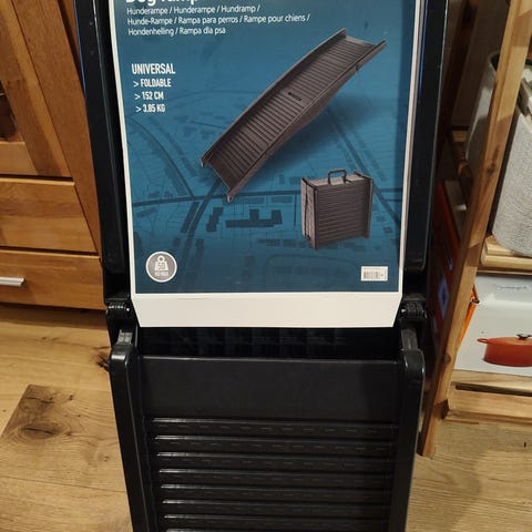Helt ny og ubrukt rampe for at kjæledyr skal komme opp eller ned fra seng/sofa. Vi har bare prøvd denne, men har bare ikke plass der vi tenkte den
