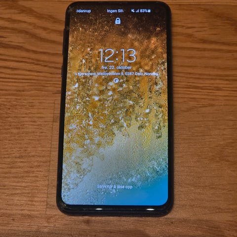 USB-C porten er litt slitt, så det hender lading stopper dersom telefonen beveges mye mens den lader. Når den ligger i ro, lader den helt fint.