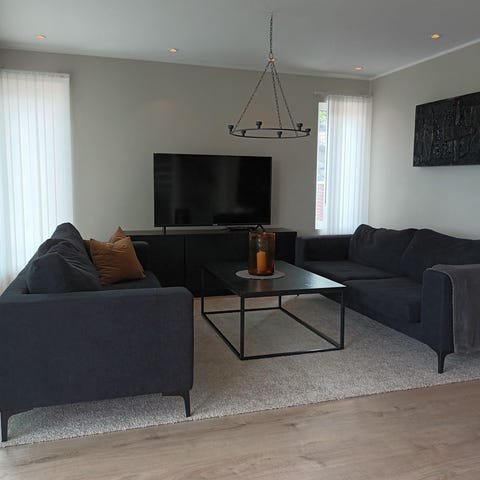 Sofaen har et tidsriktig og elegant uttrykk, er komfortabel å sitte i og passer godt i både stue og TV-rom.