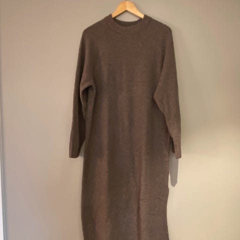 Selger pent brukt Strikkekjole fra HM. Den jeg selger er hakket mørkere enn de to første bildene som er lånt fra nettet. Den sitter veldig pent på pga innsving i livet. Passer ellers godt både til støvletter og sneakers