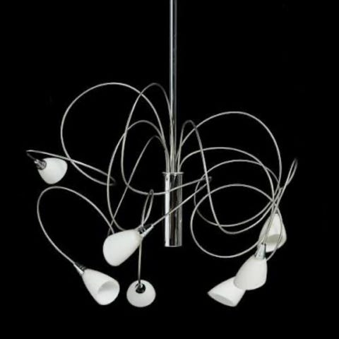 Halogen lampe m 7 hvite glasskupler. Bøyelige armer.