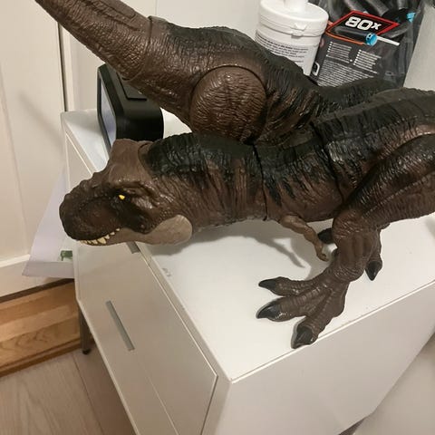 Bevegelige armer, ben og hale. I tillegg kan munnen åpnes. På magen finnes en luke som kan åpnes for å ta ut det dinosauren har spist 😉