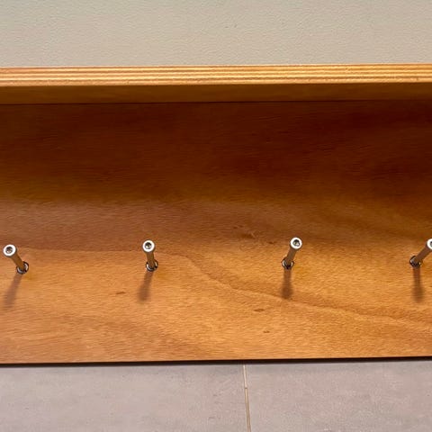 Rød hattehylle og knaggrekke fra Dokka Bondemøbler