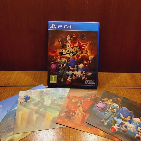 Sega Sonic Forces Playstation 4 spill. Spill i action- og plattformsjanger med aldersgrense 7 år. Inneholder muligheter for å spille som flere karakterer i Sonic-universet.