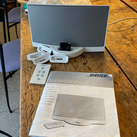 Selger en høyttaler med radio farge sort, merke PURE. Den ble kjøpt i august 2025. Følger med ladekabel.