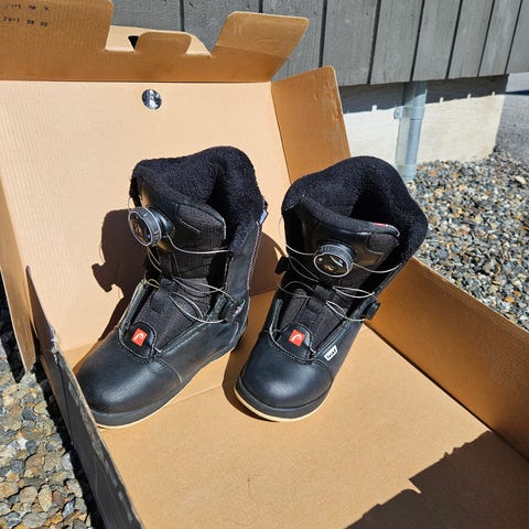 Gode snowboardstøvler selges da barna gar vokst utav dem.