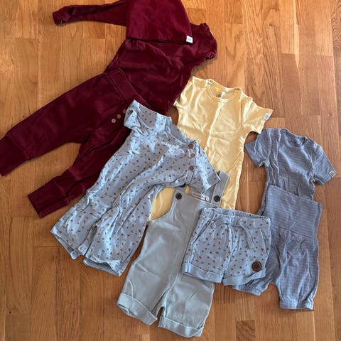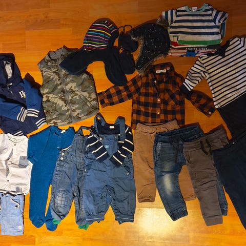 Turbukse, fleece jakke, 2 bukser, tøfler (29) og ullsokk str 24 - 26.