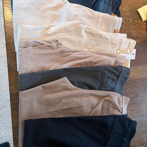 2 litt tykkere bukser selges, mørkeblå og konjakkfarget. 170 ,-kr pr stk. eller 340,-kr for begge. Veldige gode å ha på..