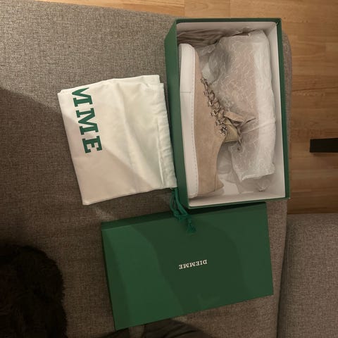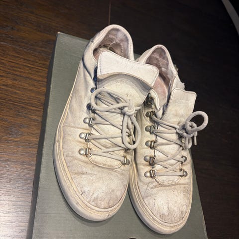 Diemme Sneakers Joggesko i størrelse 41. Fargen er mørkeblå. Skoene er laget i materialer som ikke er spesifisert ytterligere. Egnet til generell bruk som fritidssko. Er et lite hull på ene skoen på innersiden men det går ikke gjennom skoen er bare på de ytterste laget og ikke hull gjennom skinnet. Bare skoene følger med!