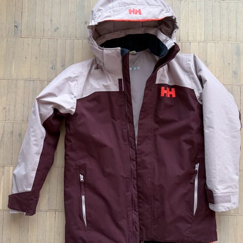 Helly Hansen jakke i størrelse 164/14 år for jenter. Jakken er rosa og laget av vanntett og pustende materiale, egnet for utendørs bruk.