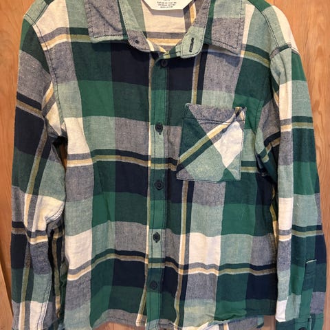 Pent brukt flanell skjorte til gutt selges. Denne kan brukes til hverdags men er også pen til en bursdag. Selges fordi den er blitt for liten.