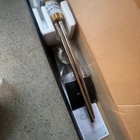 I stål. Ikke testet. Fått i gave for 2 år siden men ikke vært i bruk