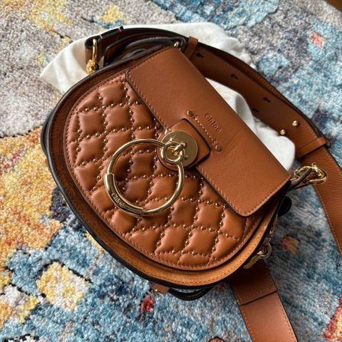 Selger min svært lite brukte Chloe Tess, dette er den store modellen. Målene er ca 22 cm høy, 24,5 cm bred og bunnen er ca 8 cm bred målt fra ytterkantene. Den har en kort og en lang rem, de kan kobles av, etter eget ønske.