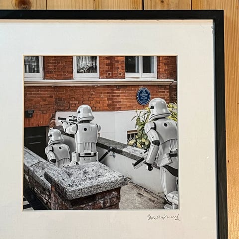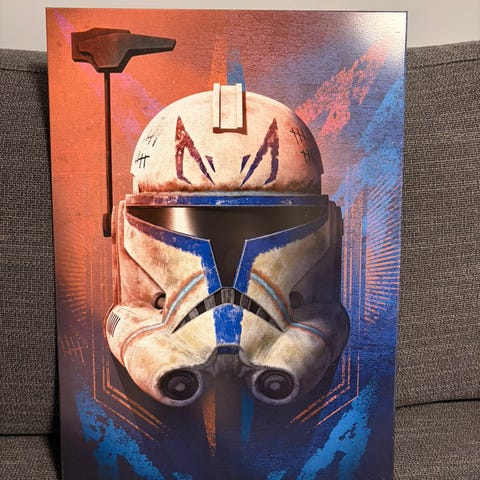 Flott plakat på treramme med motiv fra STAR WARS ROGUE ONE. Kun små bruksmerker, lim-/silikonforsterket langs rammekant (kan være originalt).