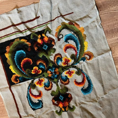 Kjempesøtt stoff med blomstermotiv i tynn bomullskvalitet. 60-70 tallet?