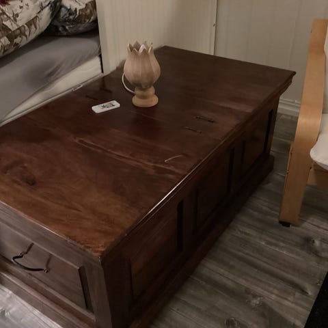 Smalt bord med litt hyller under