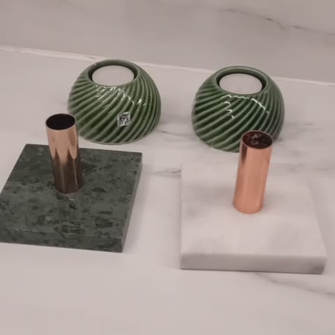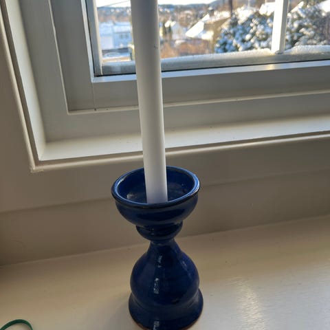 Lysestake i keramisk designet for å holde to stearinlys.