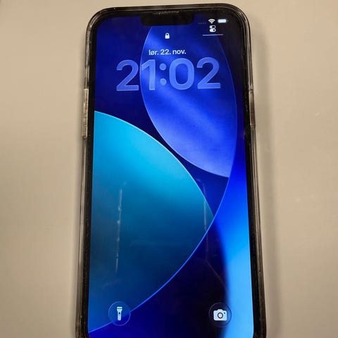 iPhone 13 med lader och deksel for kredittkort