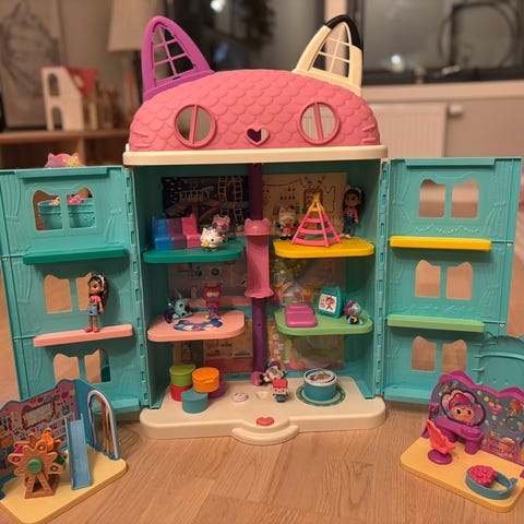 Pent brukt dukkehus fra Gabbyuniverset, kjøpt ny i 2024 og nesten ikke brukt.