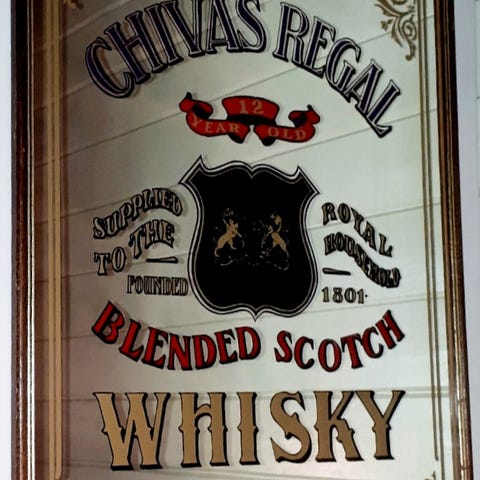 Speil med reklamemotiv av White Horse Scotch Whisky