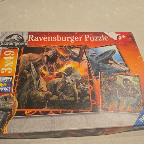 Clementoni Jurassic World puslespill med 180 biter. Puslespillet måler 42,5 x 33,5 cm når det er ferdig lagt. Motivet viser dinosaurer fra Jurassic World. Mistet 2 brikker