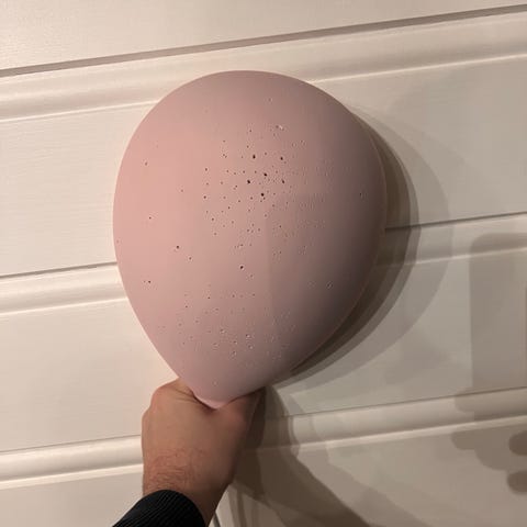 Ballong lampe som ble kjøpt i 2018 - på en lampe butikk på sandsli i Bergen. Er i baby blå farge. LED lys.