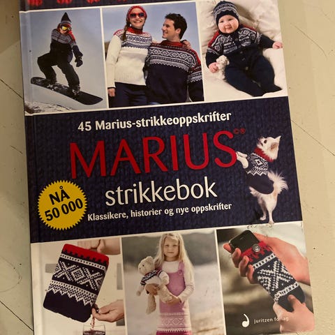 Marius Strikkebok inneholder 45 oppskrifter med klassiske Marius-strikkemønstre. Boken inkluderer historier og nye oppskrifter for strikking av ulike plagg og tilbehør.
