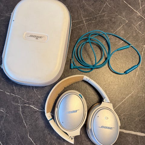 Det er slitasje på kunstskinnet på øreputene, men dette er kun kosmetisk og øreputene kan enkelt byttes (nye koster ca. 150–300 kr).