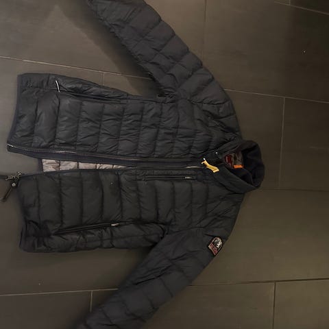 Parajumpers Warm Up-jakke i størrelse S (Youth Large), blå farge. Selv om det er en barnejakke per definisjon, tilsvarer størrelsen voksen small eller medium ettersom hvor tettsittende man foretrekker jakken. Jeg kjøpte den selv da voksen small var utsolgt, og brukte den komfortabelt som voksen. Utveksling i USA har gjort at den ikke lenger passer dessverre.