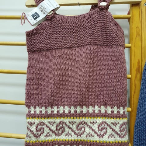 Helt ny strikket shorts i ull, str 4-6 år. Stri i livet. Strikket blomster som pynt nederst på shorts. Usikker på str så her må dere måle. Mål H 21 cm, omkrets i livet 36-48 cm. Omkrets over baken 52-62 cm. Sendes mot porto.