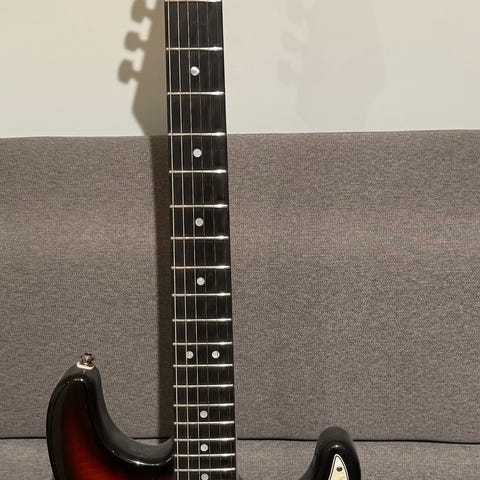 Ellers har gitaren en kropp av Mahogny, hals av hard rock Maple og gripebrettet er Rosewood. 12 tommer radius på gripebrett gjør den litt flatere enn typiske Fendere, og gitaren er ordentlig god å spille på.