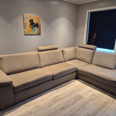 Selger en 3-seter reclinersofa (som for det meste kun har stått i en ekstra stue). Den er mørk grå, hvor begge yttersetene kan slås ut. Kjøpt på Walter Kristiansen (nypris 14.900kr) Følger med to grå 60*60 putetrekk (hører ikke til sofaen, men passer fint til). Må hentes i Vikersund. Kjøper må ha med seg bærehjelp. Sofaen står i 2. etg.