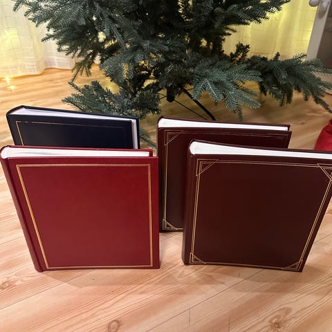 Uåpnet fotoalbum med plass til 300 bilder i burgunder og svart