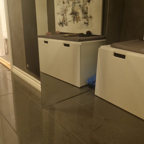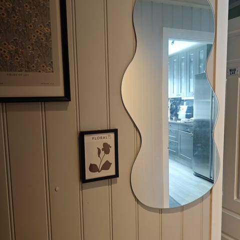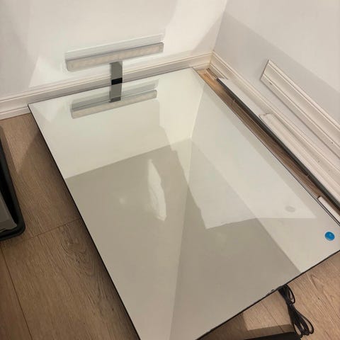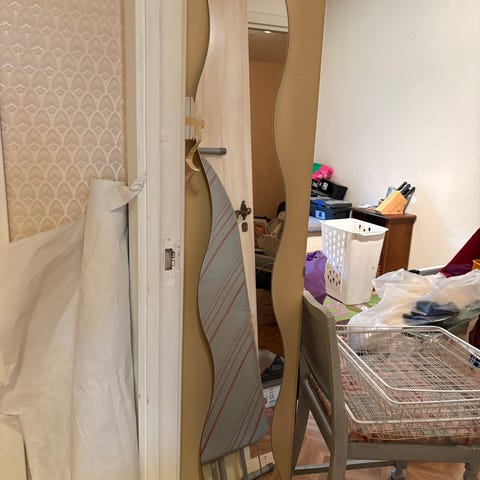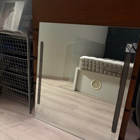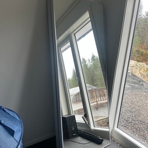 Gir bort speilet pga det er kommet en sprekk i det. Sprekken har vært der lenge, og har ikke endret seg mens det har hengt oppe eller ved demontering.