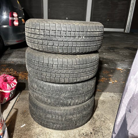Pent brukte piggfrie vinterdekk.