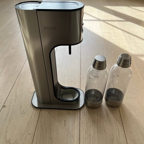 Som ny. AGA kullsyremaskin inkl flaske og to uåpnede (selvsagt!) mysoda smakstilsetnings-flasker. Selges under halv pris. Kjøpt på Elkjøp høsten 2025.
